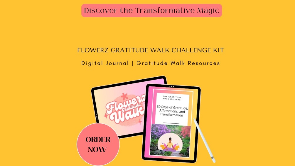1. Flowerz Gratitude Walk E-Book Journal: A beautifully designed 31-day digital journal crafted to accompany you on your walks, providing ample space to jot down your thoughts, reflections, and moments of gratitude. It's a perfect companion to deepen your connection with nature and your inner self.